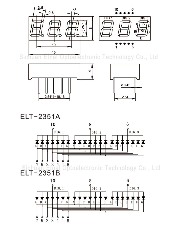 | ELT-2351BS | 0.25" 英寸 | 3位数码管 | 共阳 | 红色 |