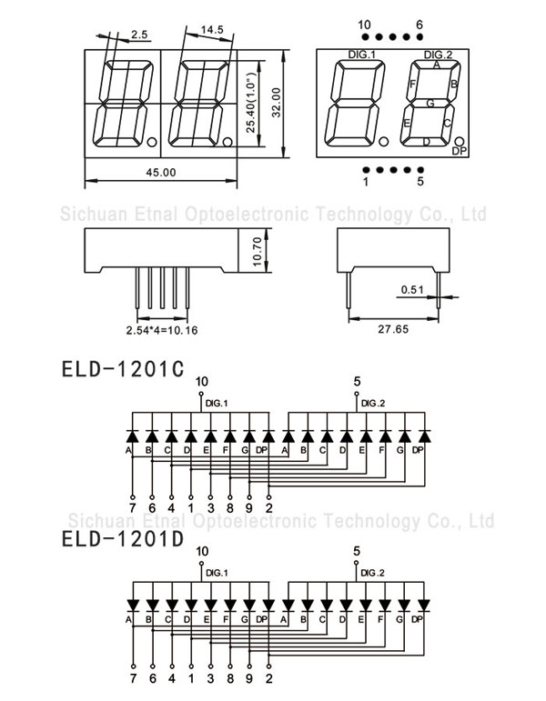 | ELD-1201DW | 1.0" inch | Dual digit led display | Common Anode | White |